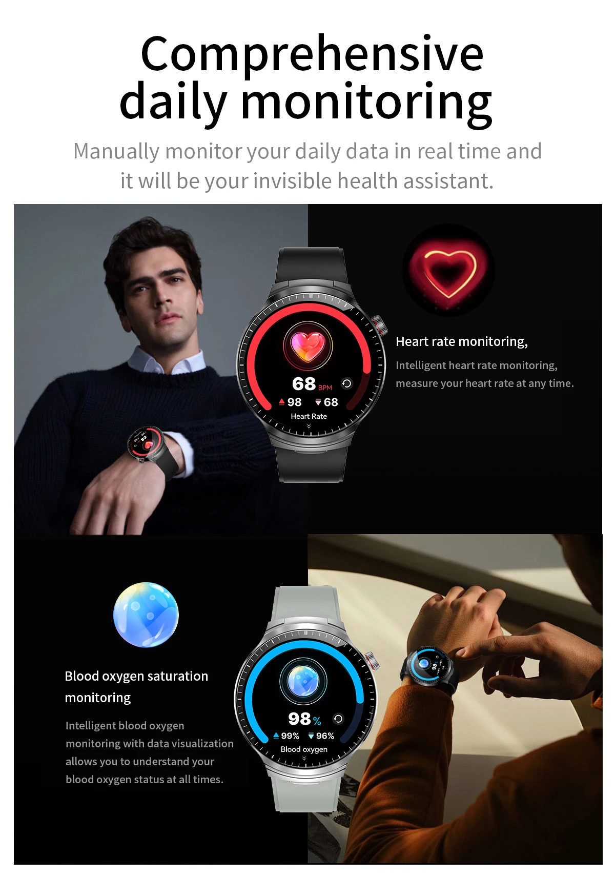Fashion smart watch: Heart rate, blood pressure, sleep, alarm clock, etc.