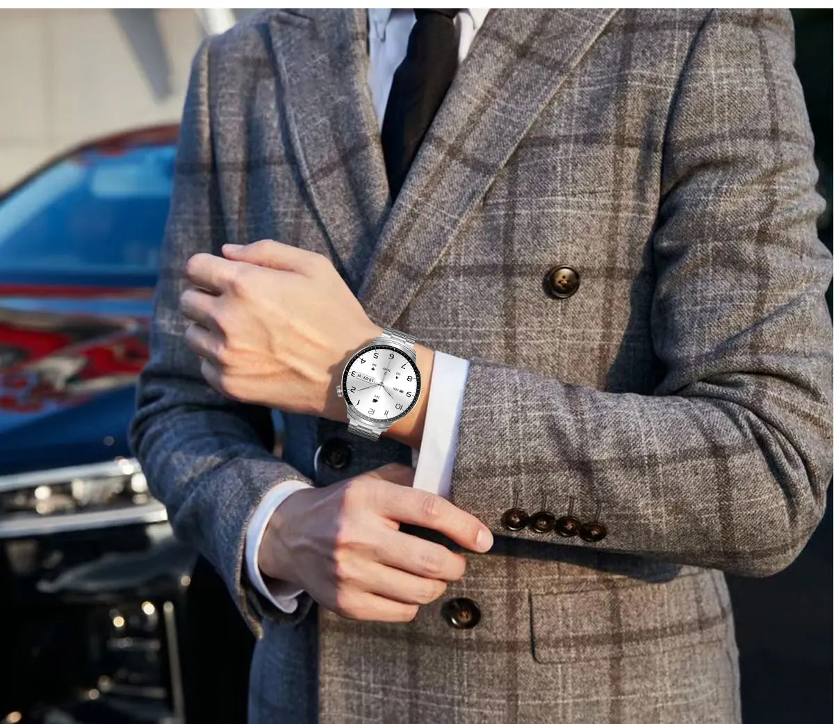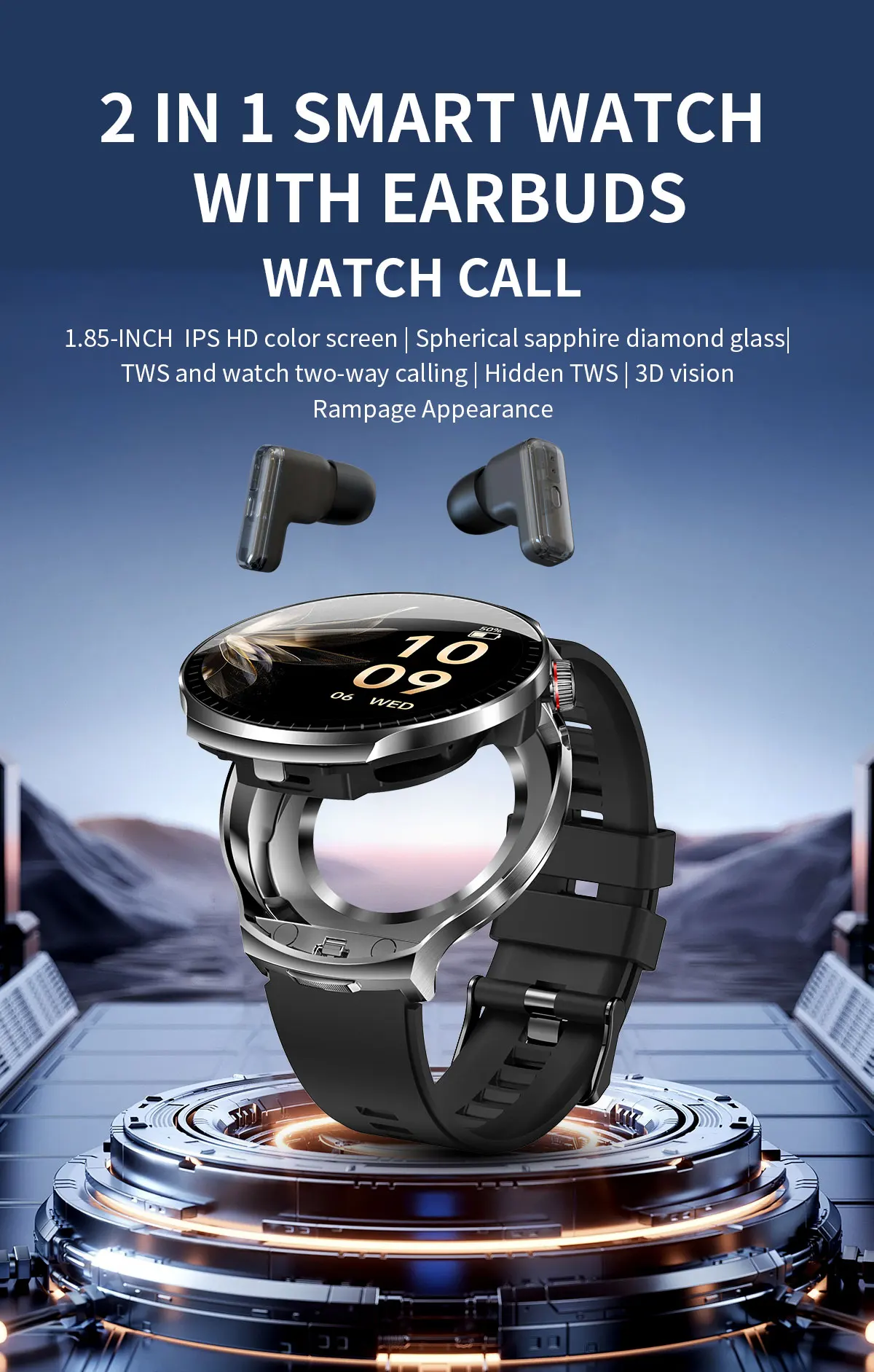 Business Fashion Rampage appearance, metal craft, skin-friendly strap, 1.85 inch spherical glass screen, three-dimensional vision, ultra-narrow bezel, high-definition screen, the watch comes with bluetooth call and encoder, ultra-low power consumption and ultra-long standby, full-circle, full-touch + mechanical buttons to operate the dual-operation, 7 sets of UI styles, BLE5.4 version, 300mAH solid capacity battery, strong endurance standby for more than 25 days. The smartwatch has 24 hours accurate detection of heart rate, blood pressure monitoring, blood oxygen monitoring, exercise monitoring, mileage, calorie consumption, message reminder, sleep record, message reminder, shaking control to take a picture, a large number of free dials to download and DIY dial making.